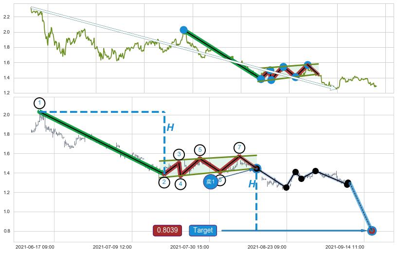 ➣ 最小中继整理跌幅→𝐇: 0.6430 (𝐇旗杆的长度:旗杆起点→顶点)