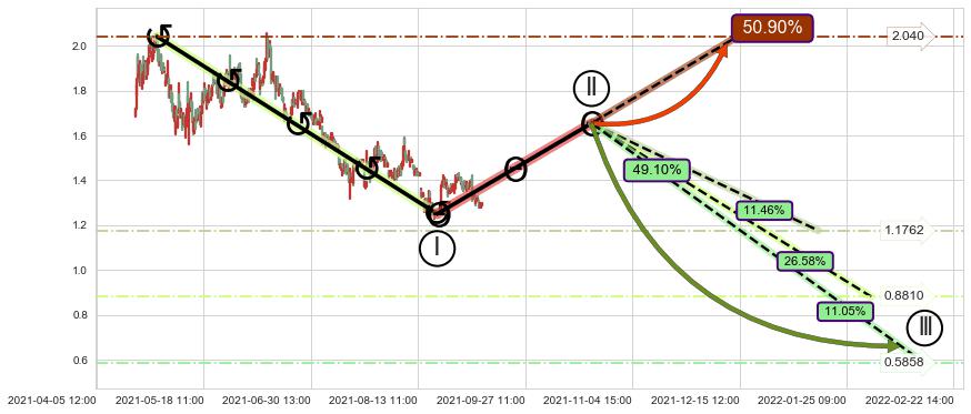 ➢ 循环浪继续向下【最低】位置(02-22:14, 0.5858),匹配聚类样本比例22.51%, 可能性概率11.05%