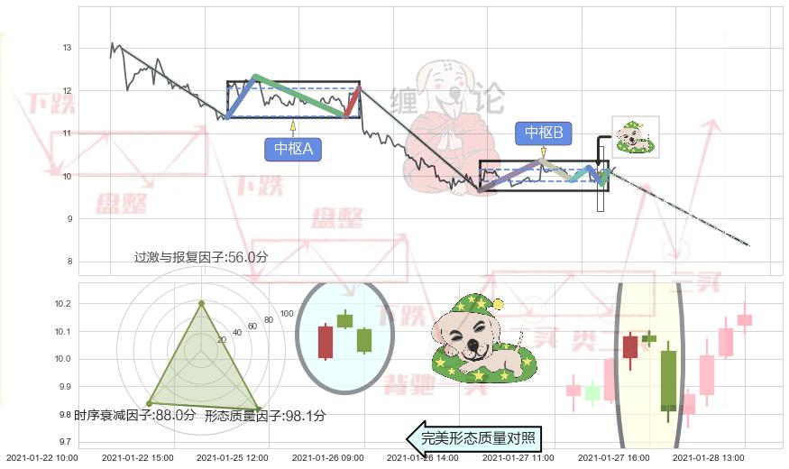 ➣ 缠论中枢点:猜想破位中枢B后持续下拉 → 下跌 → 破位中枢B支撑 → 持续趋势跟踪