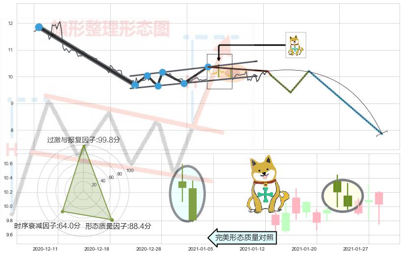从2020-12-08 10:00至2021-01-15 10:00,共包含207个小时,阶段股价下跌-27.04%,阶段股价变动位移路程比: 1 : 6,下跌趋势角度: 31.5