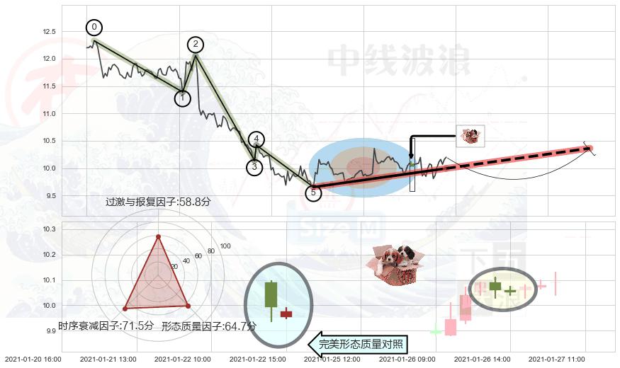 ➢ 🕰 价格走势在2021-01-28 09:00:00至2021-01-28 11:00:00期间形成早晨之星(黎明之星),残存影响值:7.34