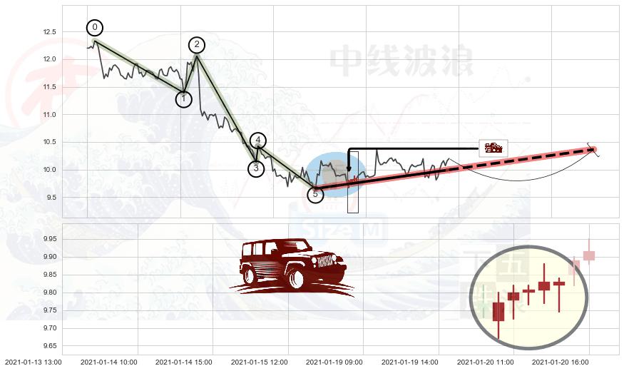 ➢ 🕰 价格走势在2021-01-20 10:00:00至2021-01-20 14:00:00期间形成低档五阳线,残存影响值:0.93