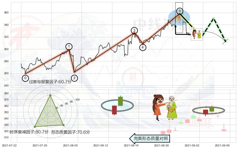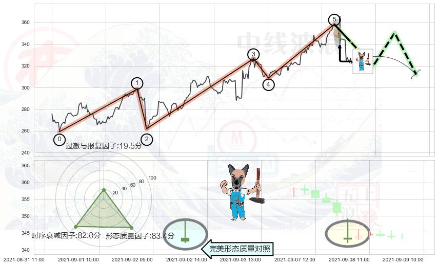 ➢ 🕰 价格走势在2021-09-08 10:00:00至2021-09-08 11:00:00期间形成顶部尽头线(下山虎),残存影响值:-3.72