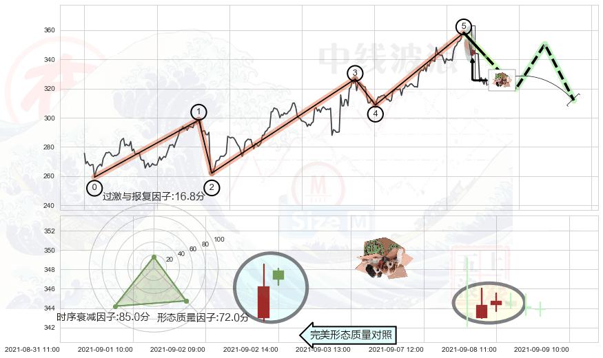 ➢ 🕰 价格走势在2021-09-08 09:00:00至2021-09-08 09:00:00期间形成看跌(高位倒锤头)流星线,残存影响值:-5.10