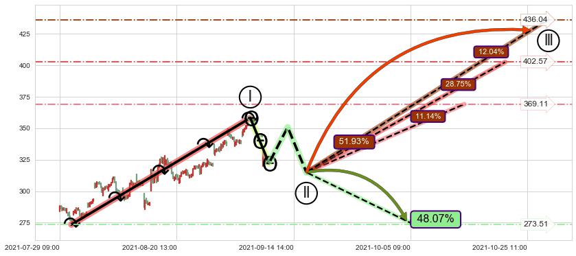 ➢ 循环浪继续向上【最高】位置(10-27:14, 436.04),匹配聚类样本比例23.18%, 可能性概率12.04%