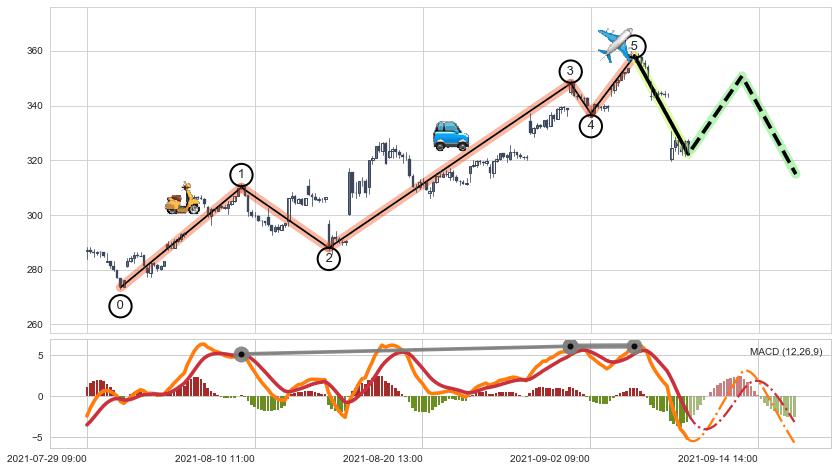 ➢ 最后的上涨趋势2021-07-30 13:00至2021-09-07 14:00:存在破位迹象,后续小调整或者反转下跌