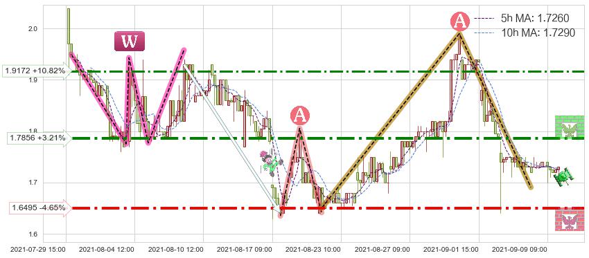 ♘ 阻力价格位1.9172,可信任强度68.91%,距离最后交易2021-09-09 14:00形成的收盘价格1.7300相差 +10.82%