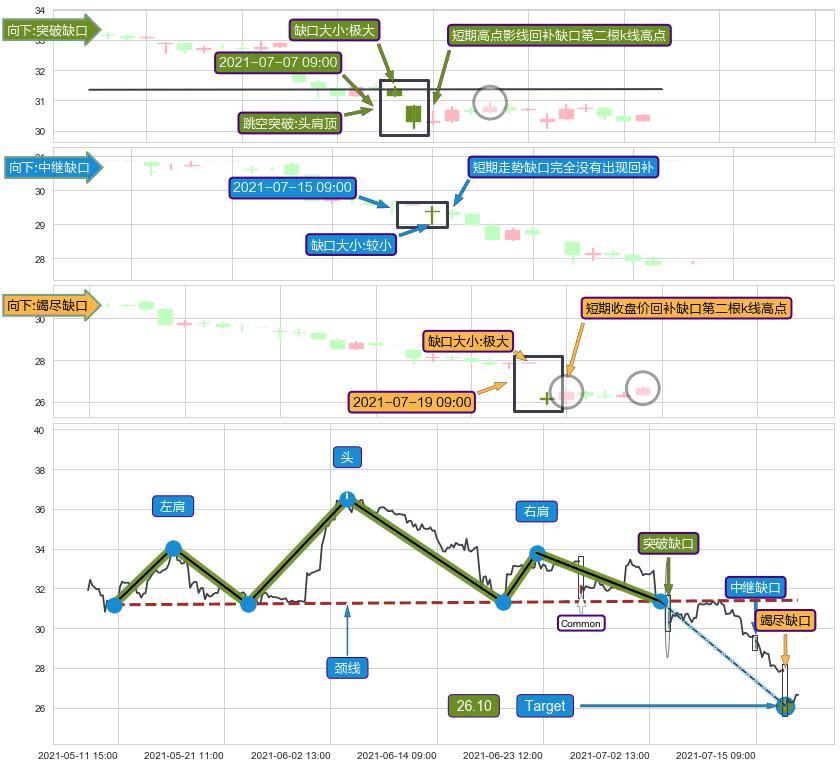 ➢ 2021-07-19 09:00形成:向下跳空【竭尽】缺口