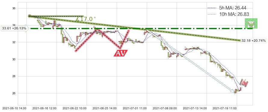 2021-06-23: 第一阻力位33.61强力阻拦了上升趋势,成功阻止了价格的继续上涨。