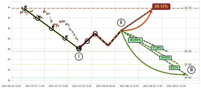 2021-07-01: 第一阻力位33.61强力阻拦了上升趋势,成功阻止了价格的继续上涨。