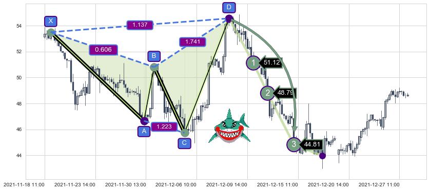 ➣ 已达成看跌【鲨鱼】形态全部的预期目标