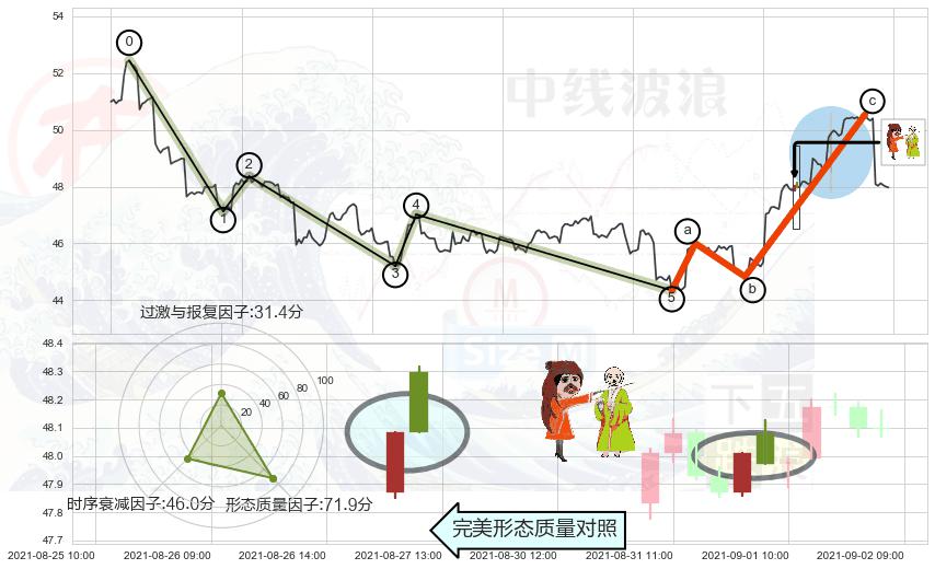 ➢ 上涨螺旋桨形态 🔜 波浪理论击穿突破C点继续上涨 综合量化分数:52.36 【中性】