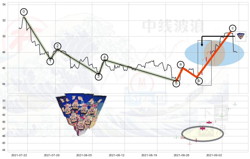 ➢ 单针探底(定海神针) 🔜 波浪理论击穿突破C点继续上涨 综合量化分数:53.66 【偏多】