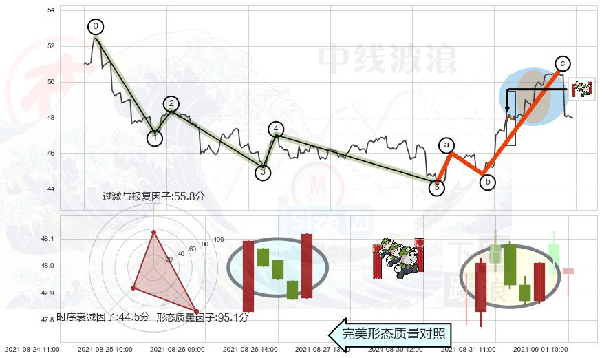 ➢ 中流砥柱形态 🔜 波浪理论击穿突破C点继续上涨 综合量化分数:55.02 【偏多】