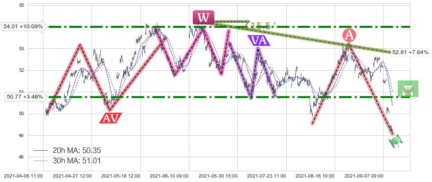 ♘ 阻力价格位54.01,可信任强度75.36%,距离最后交易2021-09-09 14:00形成的收盘价格49.06相差 +10.09%