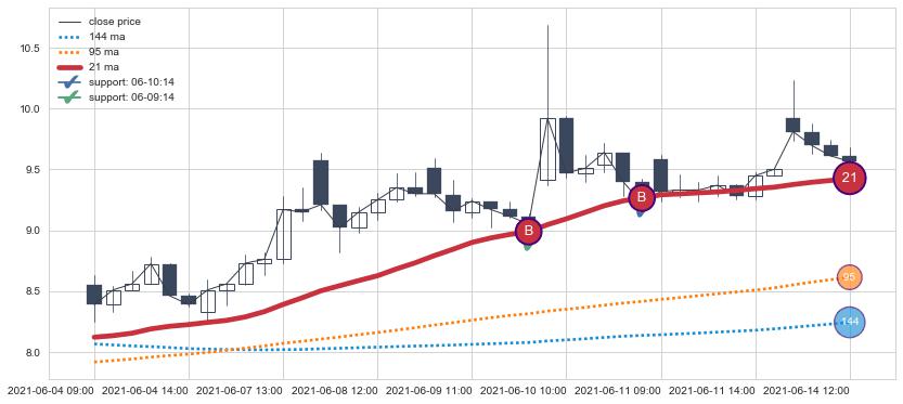 ➣ 55小时均线于(08-23 14:00: 6.74)形成【金叉】基于【金叉历史模型】预测金叉后最高波峰价格: 9.34, 金叉后最高价格7.60,尚未达到预测最高波峰价格, 预期继续上涨