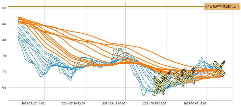 ➣ 90小时均线于(08-31 09:00: 6.83)形成【金叉】基于【金叉历史模型】预测金叉后最高波峰价格: 9.21, 金叉后最高价格7.60,尚未达到预测最高波峰价格, 预期继续上涨