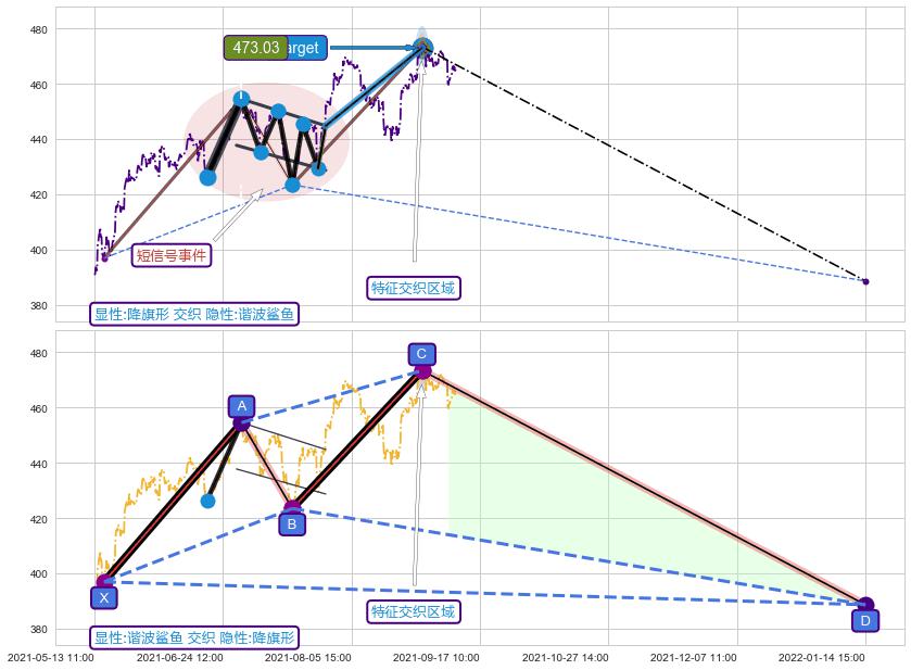 ➢ 降旗形属【短级别信号事件】谐波鲨鱼属【长级别信号事件】长短周期组合信号事件, 短长事件长度比33.88%