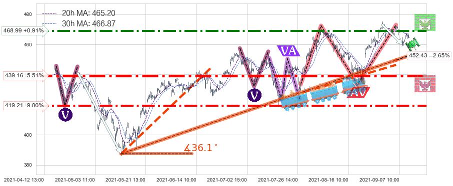 🍖 长线趋势跟踪组合短线均值回复[强支撑信号]2021-05-12 14:00-2021-09-03 11:00上升趋势依然成立(上涨趋势跟踪依然可行),短线价格略微下行回调(均值回复猜想),即将接近趋势提供的未破位的支撑价格:452.43。