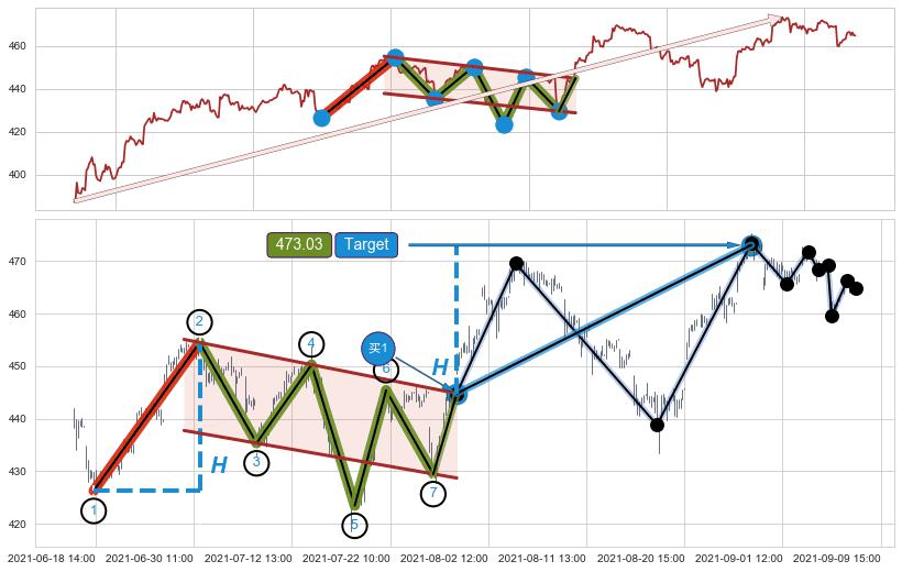 ➣ 最小中继整理涨幅→𝐇: 28.23 (𝐇旗杆的长度:旗杆起点→顶点)