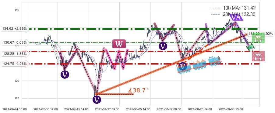 ♘ 阻力价格位130.67,可信任强度45.78%,距离最后交易2021-09-09 15:00形成的收盘价格130.71相差 -0.03%