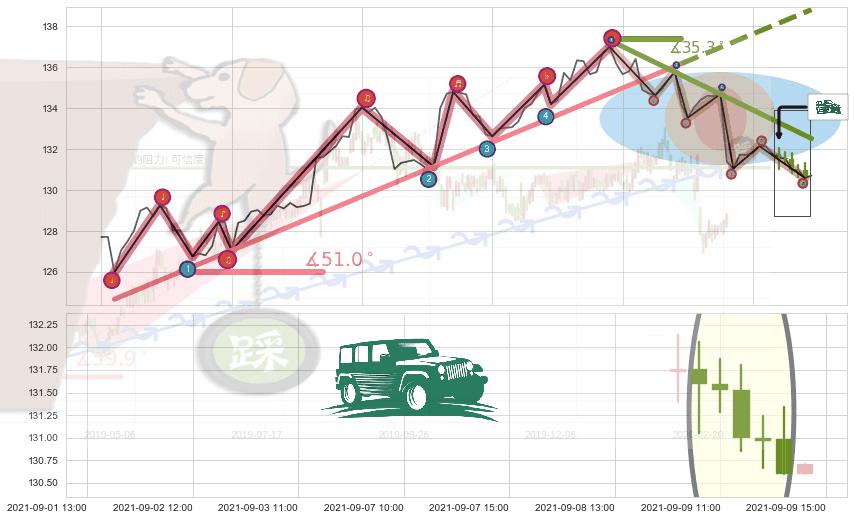 ♘ 阻力价格位131.98,可信任强度63.16%,距离最后交易2021-09-09 15:00形成的收盘价格130.71相差 +0.97%