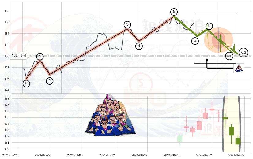 ➣ c.1: 当前c浪回调位置(09-09:14, 130.59),仍然有回调空间
