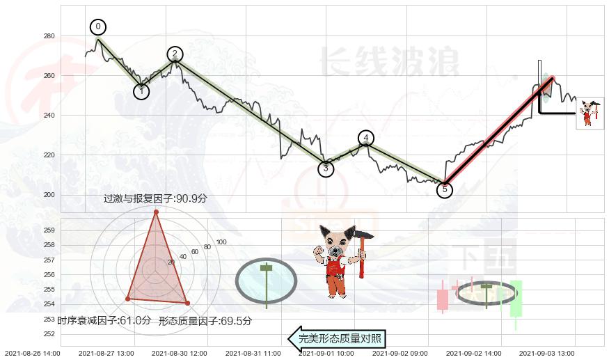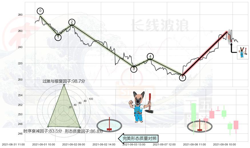 ➢ 🕰 价格走势在2021-09-09 09:00:00至2021-09-09 10:00:00期间形成双针探底,残存影响值:6.57