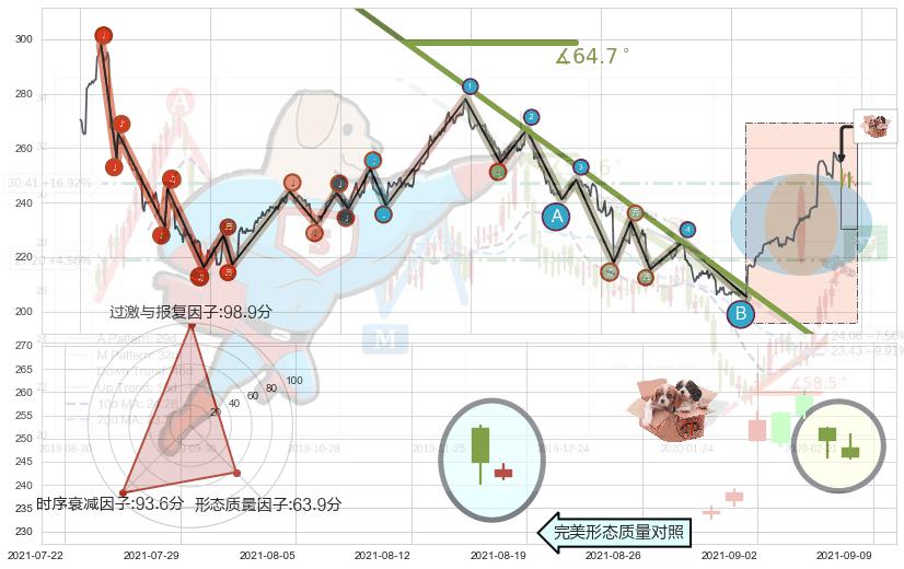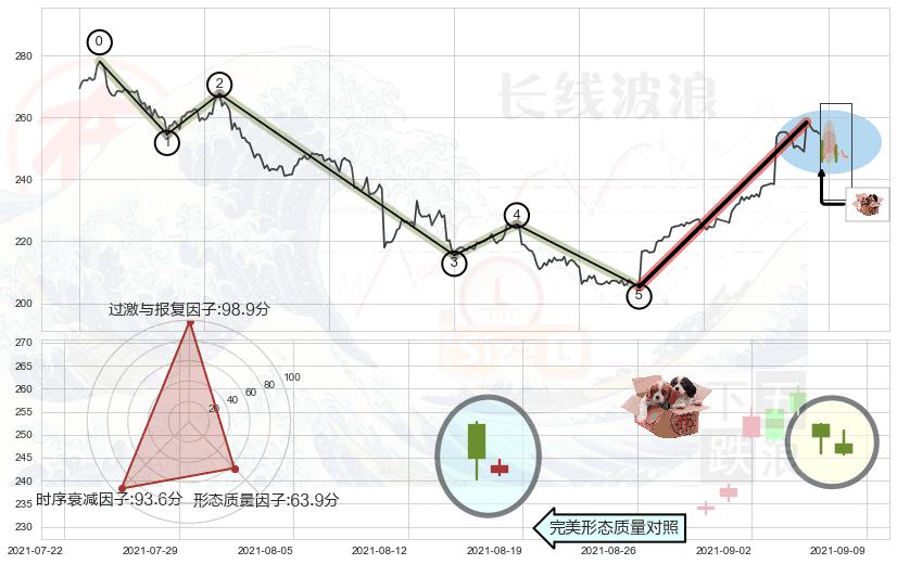 从2021-07-13 11:00至2021-09-09 14:00,共包含253个小时,阶段股价下跌-6.90%,阶段股价变动位移路程比: 1 : 22