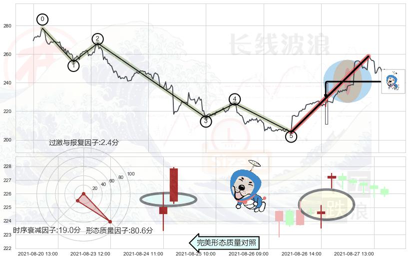 ➢ 🕰 价格走势在2021-08-27 10:00:00至2021-08-27 14:00:00期间形成高档五阴线,残存影响值:-0.42
