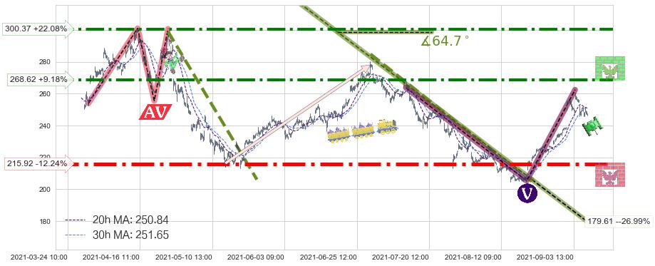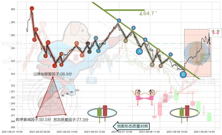 ♘ 阻力价格位268.62,可信任强度73.01%,距离最后交易2021-09-09 14:00形成的收盘价格246.03相差 +9.18%