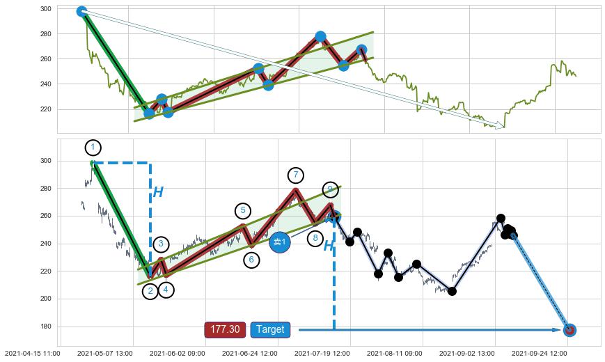 ➣ 最小中继整理跌幅→𝐇: 81.93 (𝐇旗杆的长度:旗杆起点→顶点)