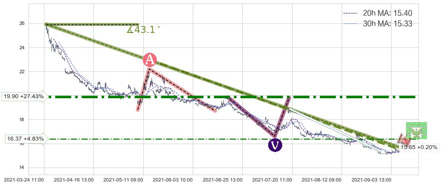 ♘ 阻力价格位19.90,可信任强度90.48%,距离最后交易2021-09-09 14:00形成的收盘价格15.62相差 +27.43%