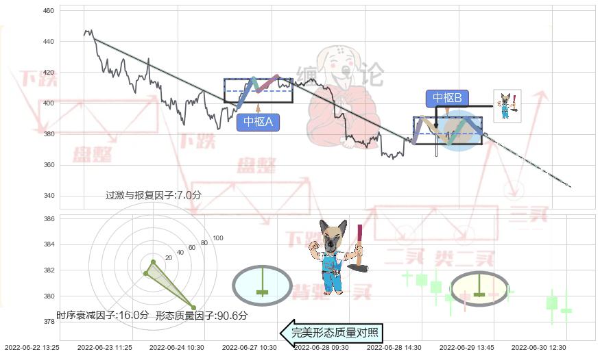 ♘ 在最后的下跌阶段2022-03-29 14:00至2022-06-23 13:25,存在 持续未破位的阻力位 ,阻力价格388.20,可信任强度77.96%,其距离最后价格379.03相差 +2.42%