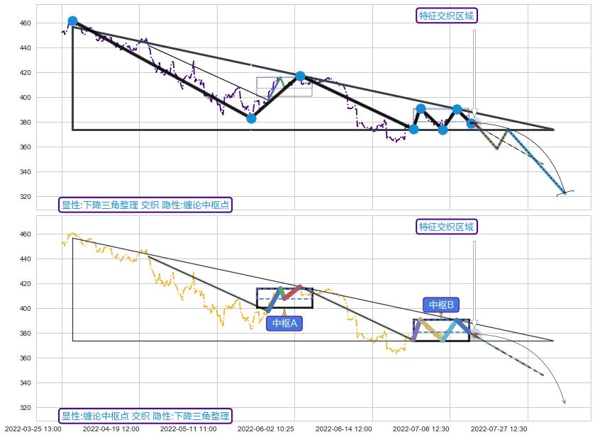 ➢ 下降三角整理与缠论中枢点信号事件周期长度级别相同,同周期信号事件