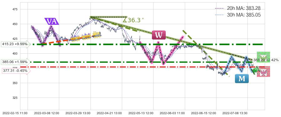 ♘ 阻力价格位385.06,可信任强度83.05%,距离最后交易2022-07-13 14:30形成的收盘价格379.03相差 +1.59%