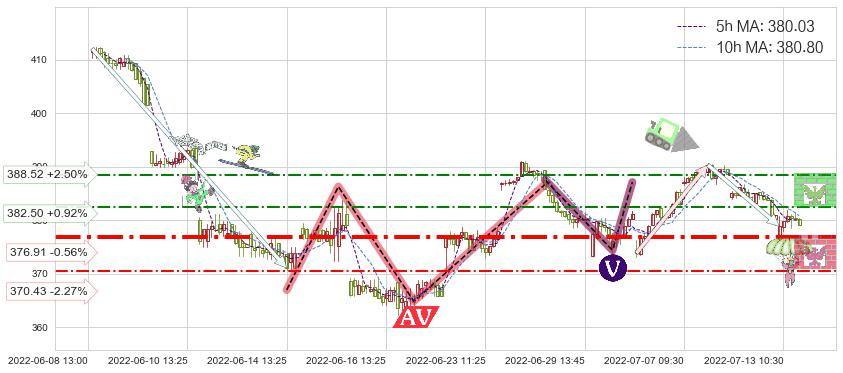 ♘ 阻力价格位382.50,可信任强度40.94%,距离最后交易2022-07-13 14:30形成的收盘价格379.03相差 +0.92%