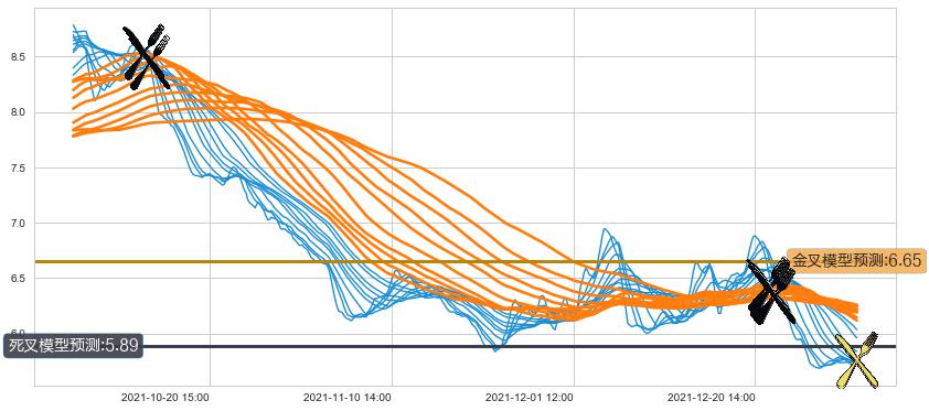 ➣ 120小时均线于(12-21 13:00: 6.41)形成【死叉】基于【死叉历史模型】预测死叉后最低波谷价格: 5.92, 死叉后最低价格5.67,已经下跌超出预测最低波谷价格, 预期反弹