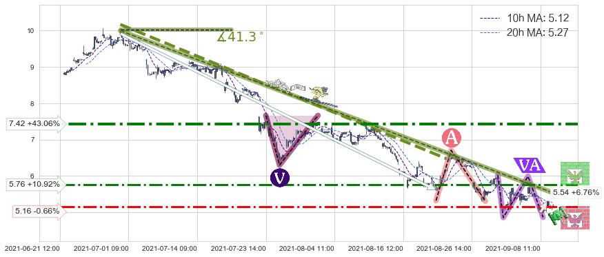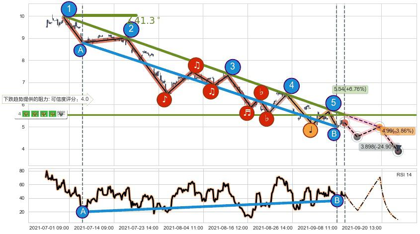 ➣ 预测:2021-09-20 11:00,【试探阻力】稳定目前下跌趋势的前提下,预测价格:4.99