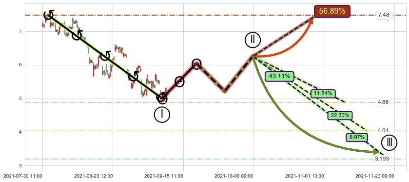 ➢ 循环浪继续向下【最低】位置(11-23:09, 3.193),匹配聚类样本比例20.81%, 可能性概率8.97%