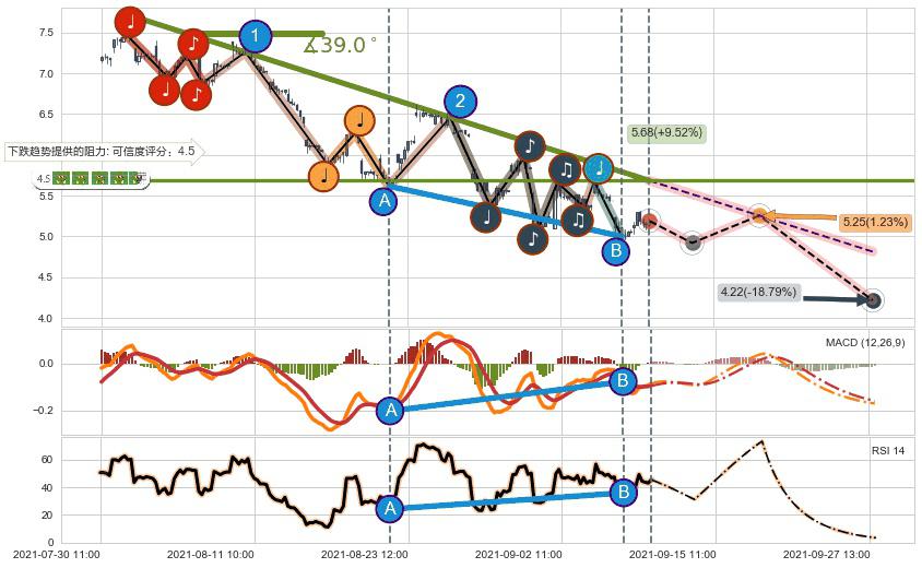 ➣ 预测:2021-09-17 14:00,【小幅反弹】稳定目前下跌趋势的前提下,预测价格:5.25