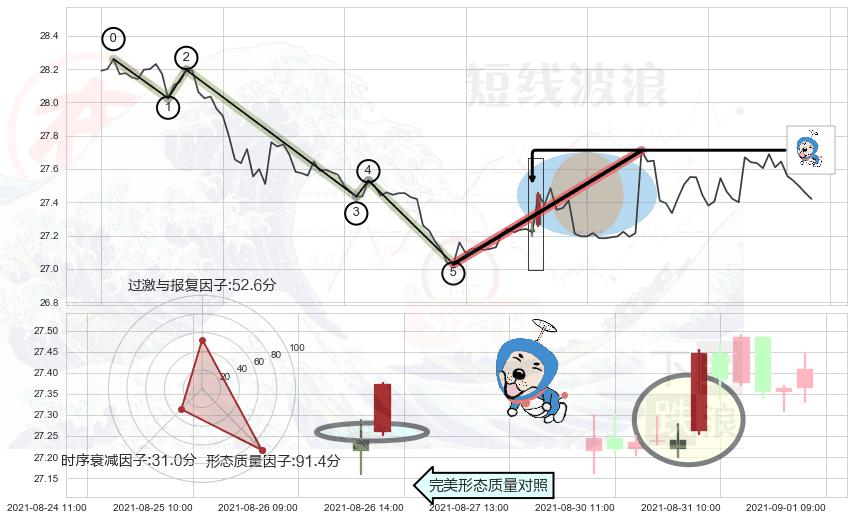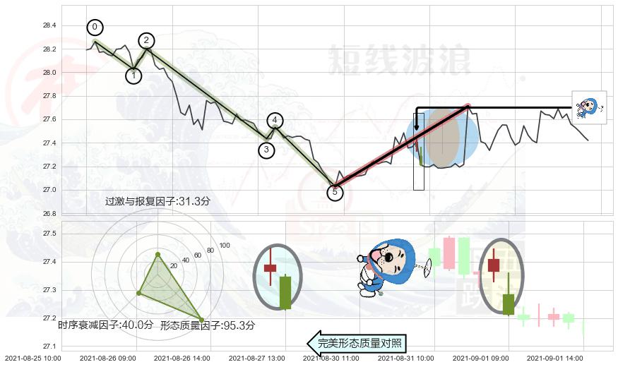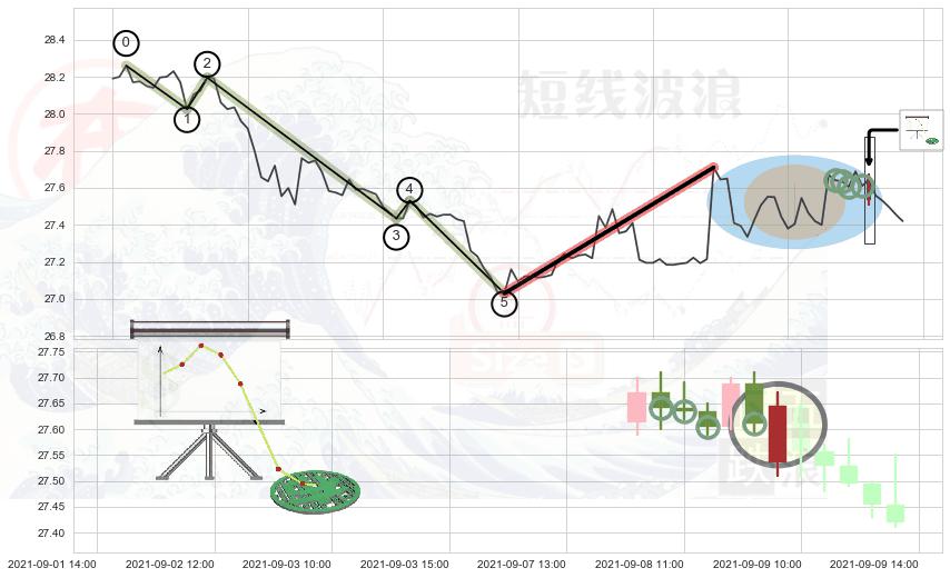 从2021-09-01 14:00至2021-09-08 13:00,共包含28个小时,阶段股价上涨1.87%,阶段股价变动位移路程比: 1 : 4