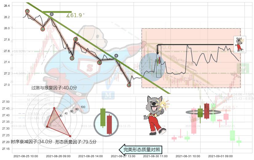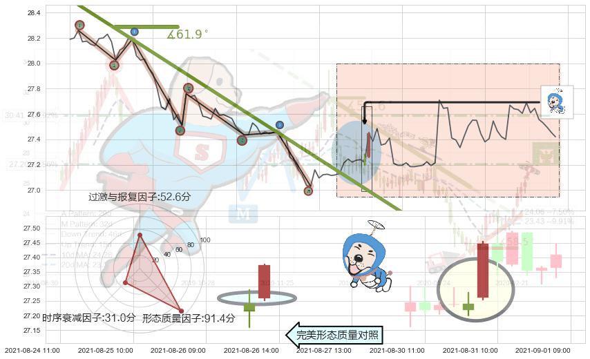 ➢ 2021-08-16 09:00-2021-08-27 12:00下跌趋势存在反转上涨[机会],其原下跌趋势的阻力位(26.05)已被突破[强支撑信号],原下跌趋势角度: 61.9˚