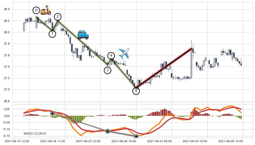 ➢ 趋势线属【短级别信号事件】缠论买卖点属【长级别信号事件】长短周期组合信号事件, 短长事件长度比13.97%