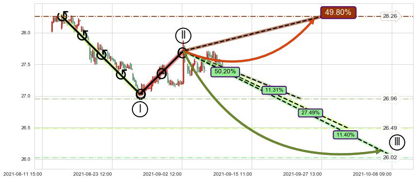 ➣ 循环浪继续向下【平均值】位置(09-30:14, 26.49),匹配聚类样本比例54.75%, 可能性概率27.49%