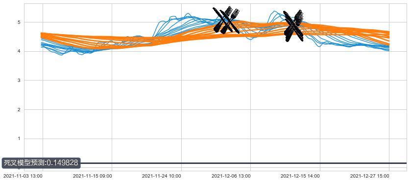➣ 55小时均线于(12-01 14:00: 5.04)形成【死叉】基于【死叉历史模型】预测死叉后最低波谷价格: -0.2188076, 死叉后最低价格4.00,尚未达到预测最低波谷价格, 预期继续下跌