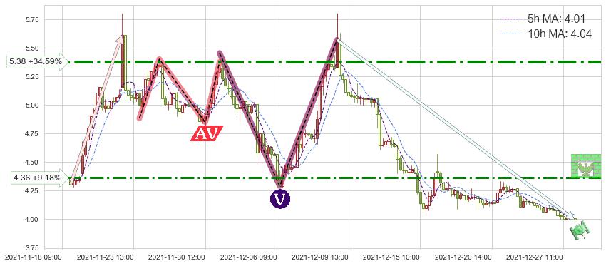 ♞ 5小时均线:4.01,10小时均线:4.04→ 快线<慢线