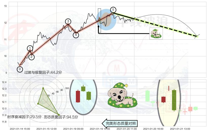 ➢ 🕰 价格走势在2021-01-25 14:00:00至2021-01-26 10:00:00期间形成低档五阳线,残存影响值:5.53