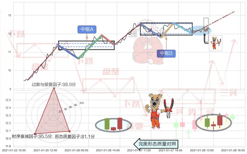 ➣ 上涨镊子线(U形磁铁) + 缠论中枢点突破中枢B阻力拉升信号叠加后【信号初始稳固度】极低,【看多】信号叠加【可信度影响极小】