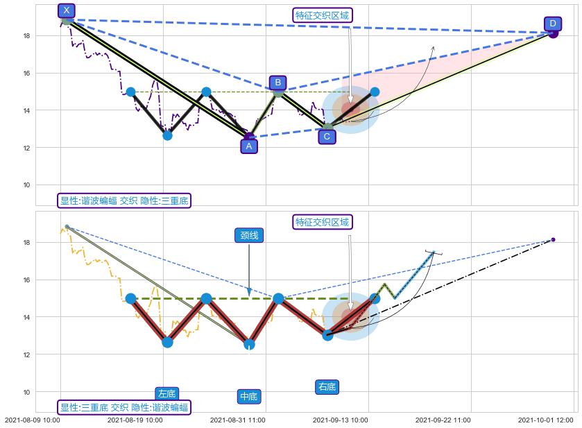 ➢ 谐波蝙蝠与三重底信号事件周期长度级别相同,同周期信号事件
